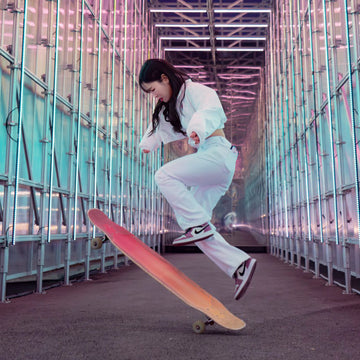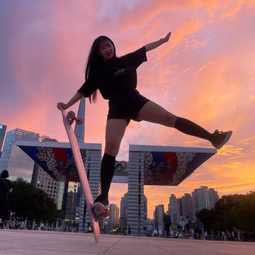 He started out with Cruisers but now he likes longboarding more. He practices Bixping and Kickflips tricks which are based on Dancing.