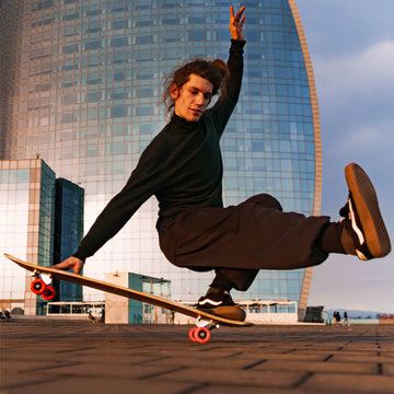 He loves flow and is specialised in balancing moves. His signature trick is the spin, which he has mastered in many different variations. He also likes to skate alone to music because he can fully indulge in the flow.