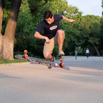 Su prioridad es pasarlo bien con los amigos mientras se divierte pateando las calles, ya sean con los ejes de precisión Pinto o The Second.